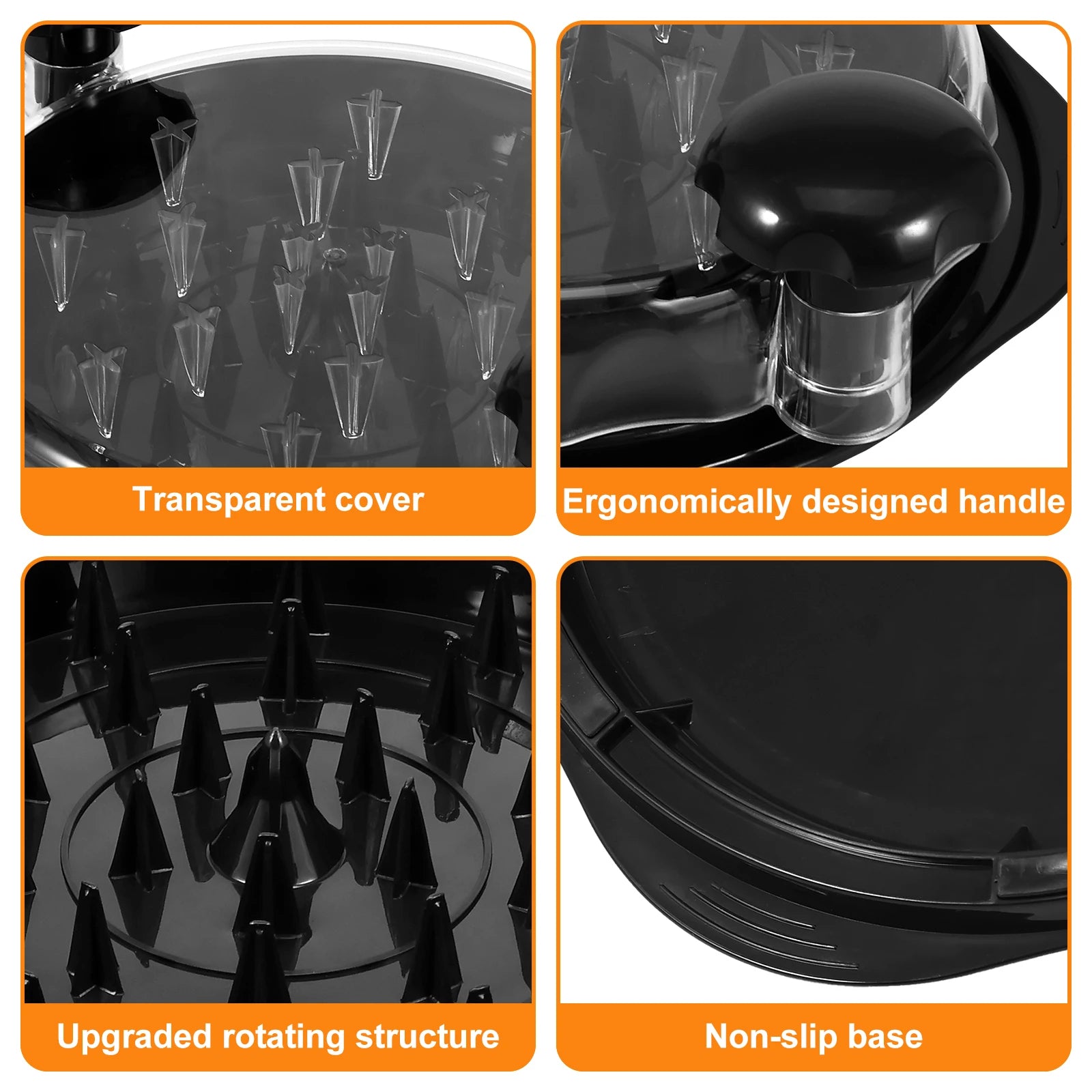 Discover the latest innovation in kitchen convenience with this meat shredder tool, tailored for those who love efficiency and style. Boasting a sleek design with a unique flower appearance and a clear, polka-dotted lid, this upgraded model features an improved shred structure and a strong anti-slip strip to prevent slipping during use. Equipped with durable plastic teeth and extra lid spikes, it ensures even and quick shredding of meat. The ergonomic handle and anti-slip base offer comfort and stability, making it easy to handle during prolonged use. Constructed from premium, food-grade, BPA-free materials, this tool is heat-resistant up to 356℉ and dishwasher-safe, accompanied by a brush and fork for convenient cleaning. To use, simply cook and cut meat into small pieces, avoiding raw meat to prevent damage to the spikes. Place the pieces onto the shredder, and twist to achieve finely shredded meat, visible through the clear lid. Ideal for shredding chicken, pork, beef, and more for dishes like enchiladas, tacos, and salads, it's a must-have for fitness enthusiasts, barbecue aficionados, and pet owners. This black meat shredder tool is not just a kitchen gadget but a versatile companion for creating delicious meals, making it a thoughtful gift for any special occasion.